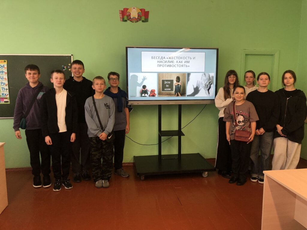 4 октября для учащихся 8 «А» класса ГУО “Средняя школа №25 г.Гомеля имени Б.А. Царикова” прошла беседа «Жестокость и насилие: как им противостоять?». Ребятам было предложено разобраться в понятиях: агрессия, жестокость, насилие. В ходе беседы несовершеннолетние обсудили трудные жизненные обстоятельства, с которыми они могут столкнуться в семье, школе, на улице, при общении со сверстниками.