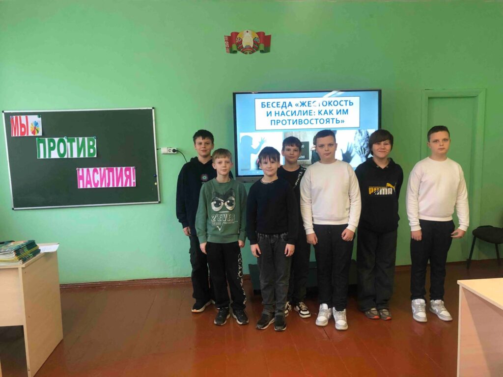 18 октября с целью формирования у несовершеннолетних представлений о насилии и способах его предотвращения, обучения правилам безопасного поведения прошла беседа с учащимися 6 «Б» класса на тему «Жестокость и насилие: как им противостоять». Ребятам было рассказано об отличительных особенностях насилия, его видах и последствиях. Мероприятие способствовало закреплению и углублению знаний несовершеннолетних о насилии и жестокости, правилах безопасного поведения.