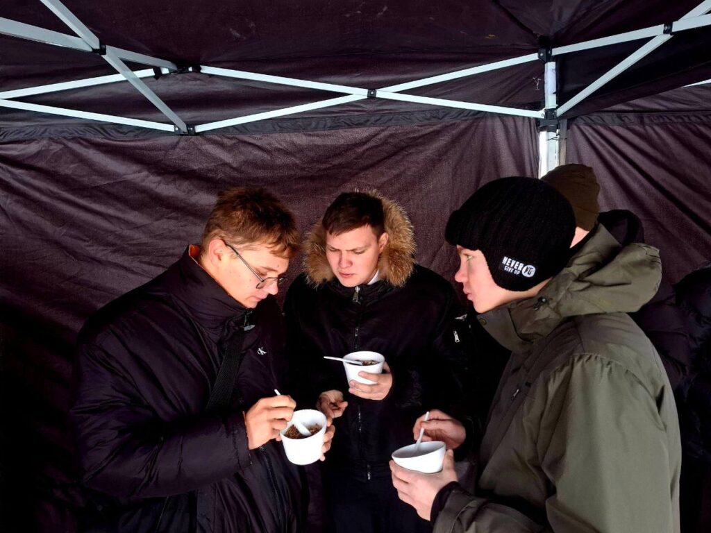 После знакомства с техникой всех ждал горячий обед прямо на свежем воздухе.