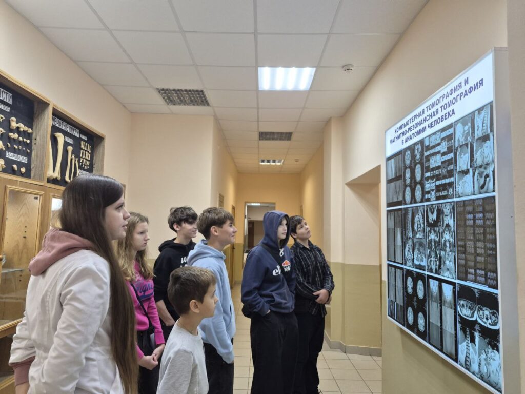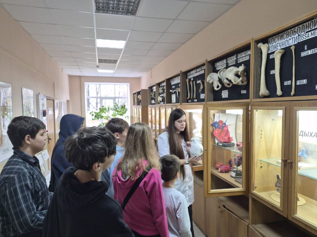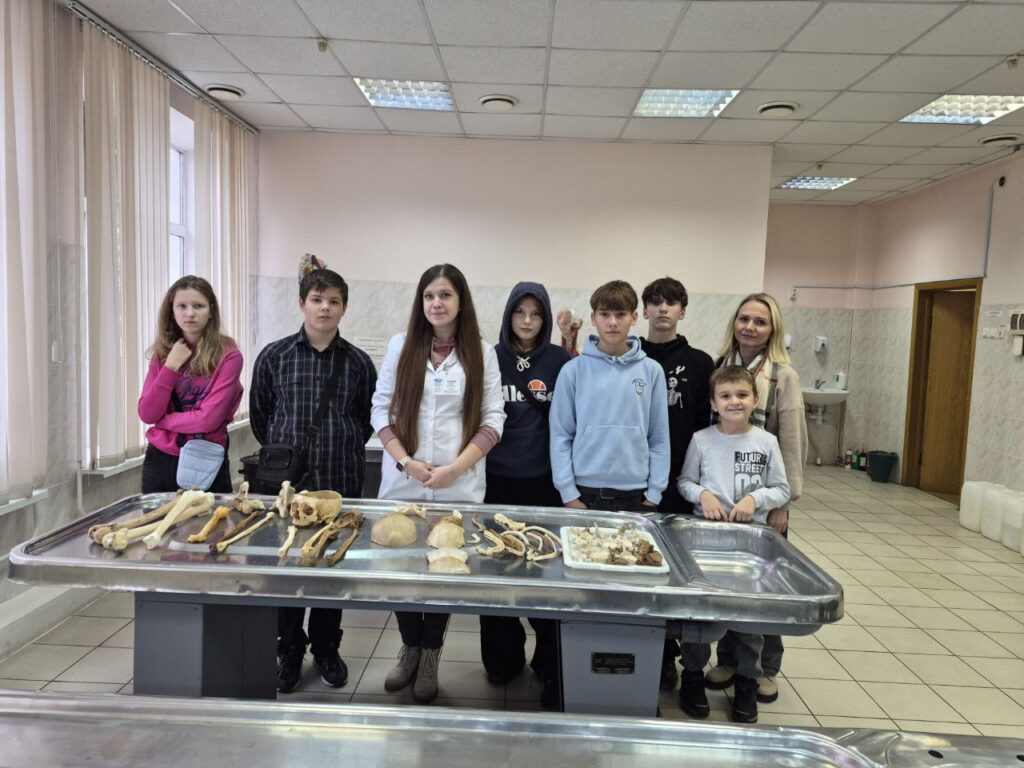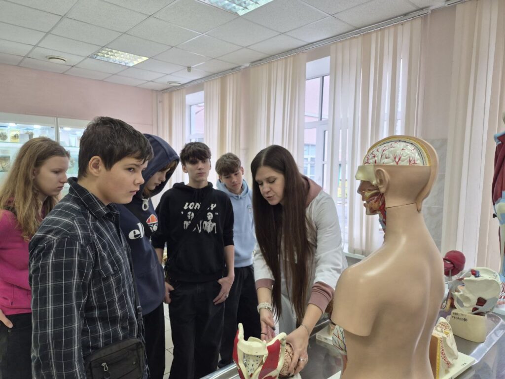 В шестой школьный день учащиеся 8 “В” класса ГУО “Средняя школа №25 г.Гомеля имени Б.А.Царикова” посетили анатомический музей в ГУО “ГомГМУ”. Ребята познакомились с уникальными экспонатами, которые раскрывают сложное строение организма, увидели настоящие скелеты, муляжи внутренних органов, узнали, как работает организм человека, поговорили о строении сердца, лёгких, мозга и других важных органов, а также узнали, как связаны между собой разные системы организма и как знание анатомии помогает врачам спасать жизни. Большой интерес у ребят вызвал уникальный по своим функциям интерактивный стол Пирогова.