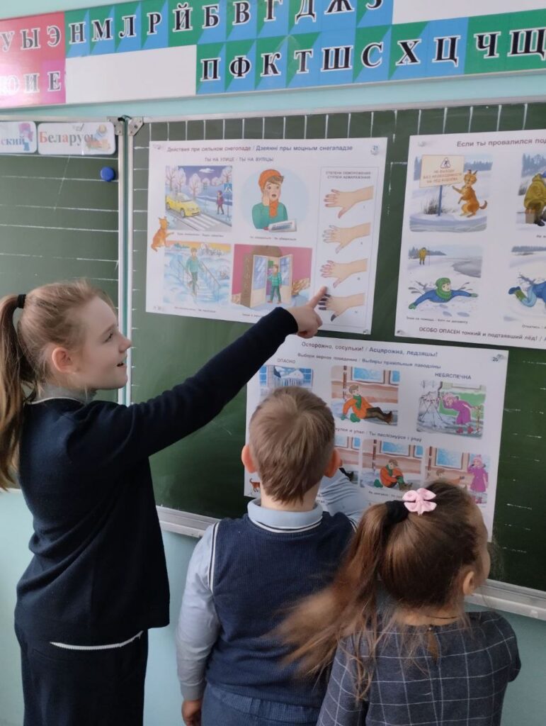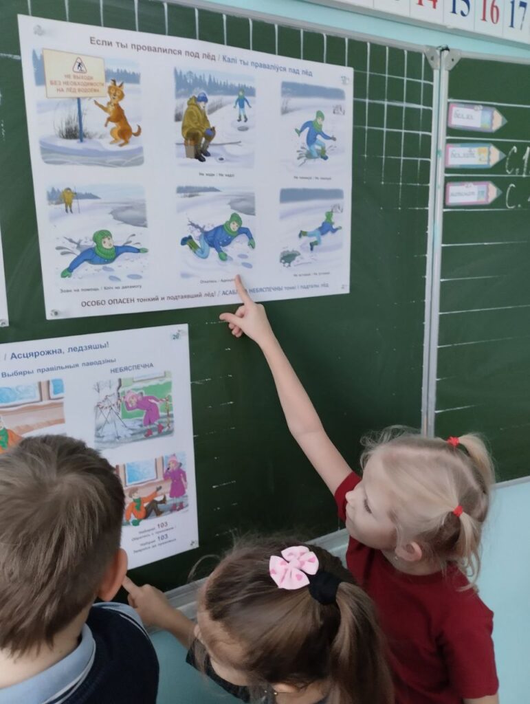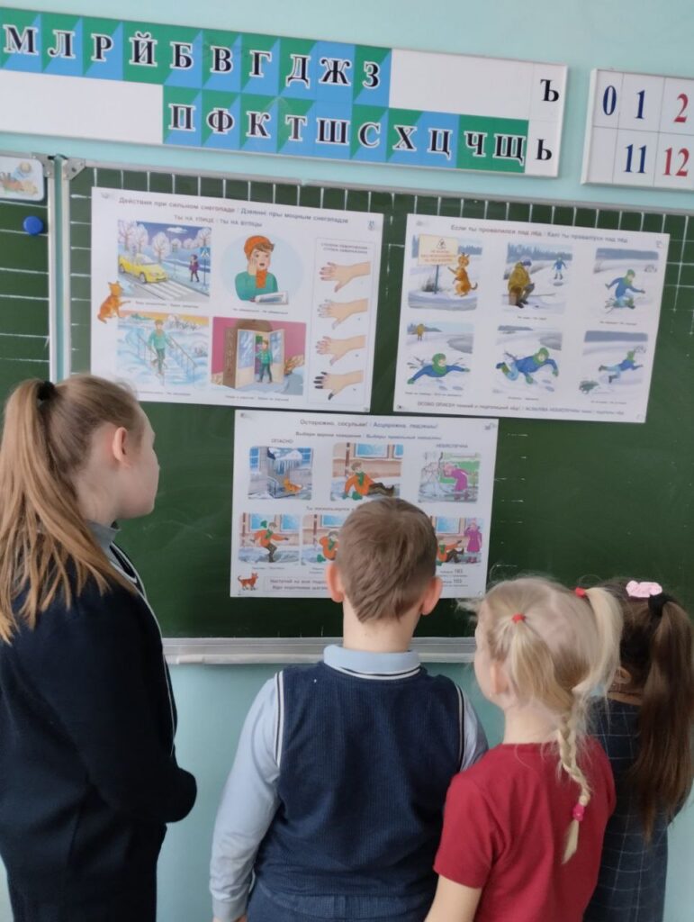 В ГПД №4 прошло тематическое занятие “Безопасность в зимний период”. Дети вспомнили правила поведения на льду, при сильном снегопаде, а также узнали, что необходимо делать при первых признаках обморожения.