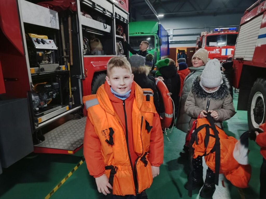 31 декабря учащиеся воспитательно-оздоровительного лагеря «Патриот» ГУО «Средняя школа №25 г.Гомеля имени Б.А.Царикова» посетили «Пожарную аварийно-спасательную часть № 4». Сотрудники приветливо встретили ребят и ознакомили с пожарно-техническим вооружением пожарной части. Они рассказали о пожарной технике и показали детям, как и чем оборудованы машины, для чего служит тот или иной предмет из многочисленного пожарно-технического вооружения. Сотрудники учреждения разрешили ребятам подняться в машины, ощутить себя юными пожарными. С огромным желанием и восхищением дети рассматривали пожарные машины, аварийно – спасательное оборудование. Нам показали пожарные рукава и другие, столь нужные спасателям инструменты на пожаре, рассказали о их назначении. Дети одевали тепло-отражательные костюмы, боевое обмундирование и снаряжение, примерили каску пожарного. Огромный заряд положительных эмоций от экскурсии в пожарную часть получили ребята в канун Нового года.